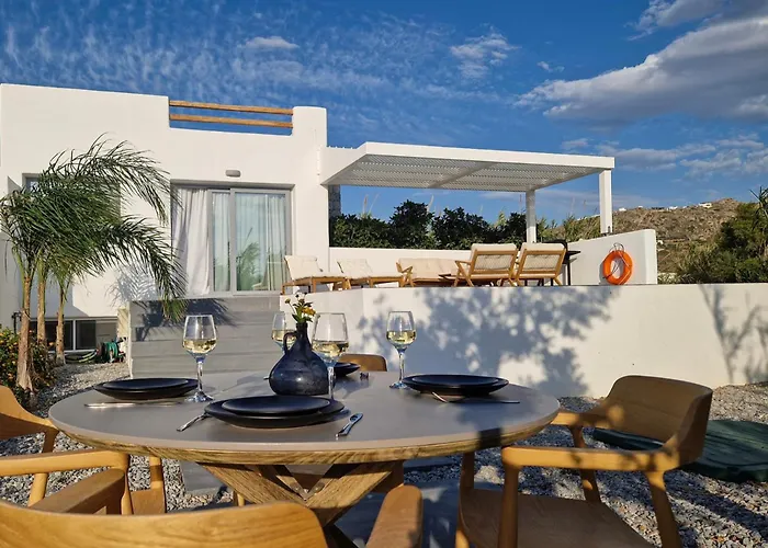 تقع فيلا Zoe Cycladic House With Pool Naxos City المكونة من 1 غرفة نوم بالقرب من شاطئ بلاكا، وتوفّر الشرفة مع إطلالات على الحديقة. أثناء إقامتهم في بيت العطلات في Pláka على بعد بضعة خطوات عن بلاكا كامبينغ، يمكن للضيوف الاستمتاع بالواي فاي وموقف السيارات الخاص المجاني.